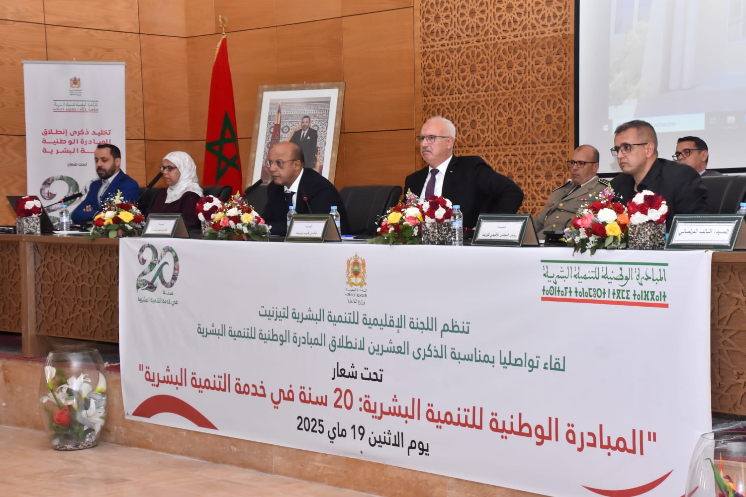 احتفاء بالذكرى العشرين لانطلاق المبادرة الوطنية للتنمية البشرية، نظمت اللجنة الإقليمية للتنمية البشرية بتيزنيت لقاء تواصليا يومه الاثنين 19 ماي 2025 ، ترأسه السيد عبد الرحمان الجوهري، عامل إقليم تيزنيت رئيس اللجنة الإقليمية للتنمية البشرية، بحضور كل من محمد الشيخ بلا رئيس المجلس الإقليمي لتيزنيت ، سعيد تايك الكاتب العام للعمالة، وأعضاء اللجنة الإقليمية واللجن المحلية للتنمية البشرية، إلى جانب رؤساء الجماعات الترابية و رؤساء المصالح الخارجية والأمنية، وممثلي الغرف المهنية، وعدد من فعاليات المجتمع المدني.