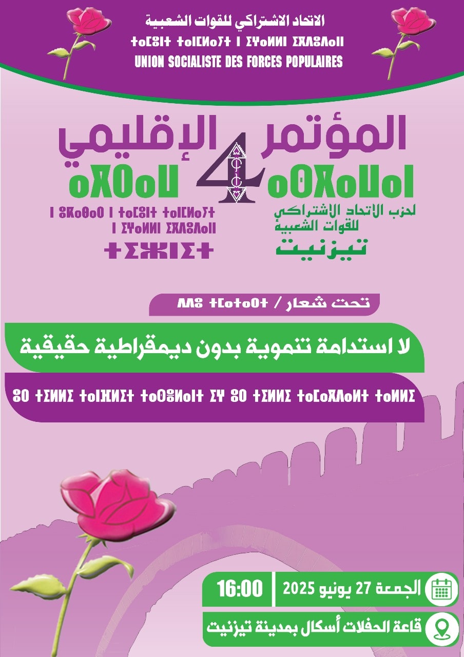 بلاغ تنظيم المؤتمر الإقليمي الرابع لحزب الاتحاد الاشتراكي للقوات الشعبية بتيزنيت