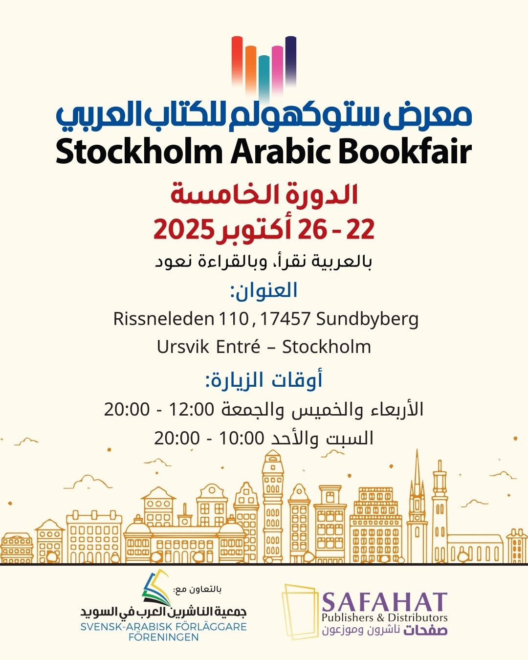 منذ خمس سنوات فقط، كانت فكرة إطلاق معرض عربي للكتاب في شمال أوروبا تبدو للبعض أقرب إلى المغامرة الثقافية. لكن اليوم، وقد وصل معرض ستوكهولم للكتاب العربي إلى دورته الخامسة، أضحى حدثا سنويا راسخا في المشهد الثقافي الأوروبي، وملتقى يحج إليه الناشرون والكتاب والجمهور من مختلف الأجيال والخلفيات.