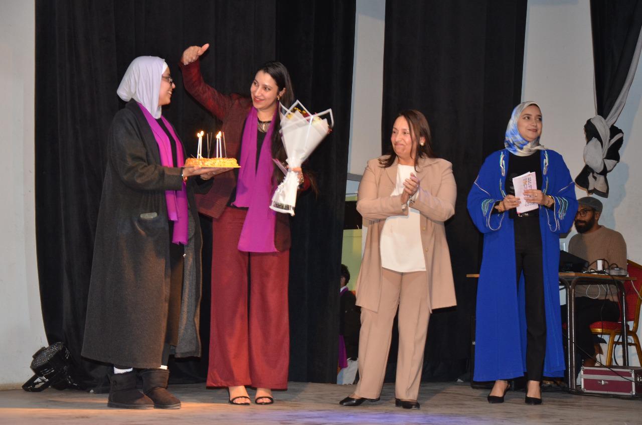 وقد تميزت هذه الأمسية بحضور وإسهام الفنانة رباب حمراوي التي تولّت تنشيط فقرات الحفل بأسلوب احترافي أضفى جواً من التميز والرقي على البرنامج، حيث نجحت في خلق تفاعل إيجابي بين الجمهور وفقرات الأمسية، مما منح الحفل طابعاً احتفالياً يعكس روح المناسبة ويبرز قيمة المرأة كشريك فاعل في المجتمع.